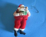 SANTA XMAS TREE ORNAMENT CERAMIC & FELT MOVABLE LOWER BODY 5" W/PIPE, BOOK, BEAR