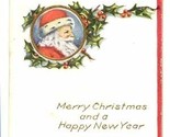 - Santa Xmas tag antique Victorian holly pretty vintage antique greeting