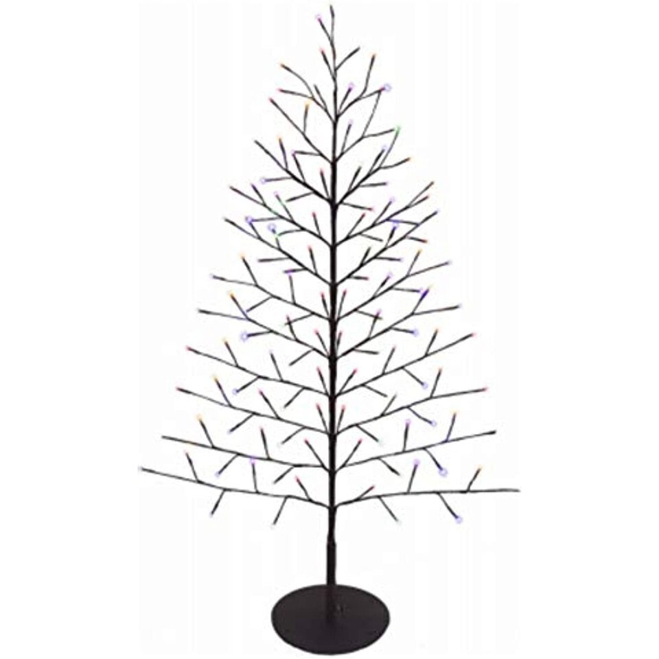 50", Illuminated Twinkling Bare Branch Wall Tree, 124 Starry 5 mm Multi LED Lights, Brown Tree, Continuous On, Non-Replaceable Bulbs, Shimmer Free, With Folding Stand So That Tree Can Be Displayed Against The Wall Or Away From The Wall, Include Stakes For Lawn Display, Indoor/Outdoor.