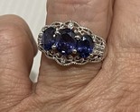 Sapphire And White Cubic Zirconia Rhodium Over Sterling Silver Ring sz 9