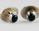 - Sapphire Cabochon Cufflinks set in Silver-Colored Metal