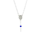 You are purchasing a beautiful sapphire crystal 18"long rosary necklace. Center comes with silver tone accent medal with image Our Lady of the Miraculous Medal.