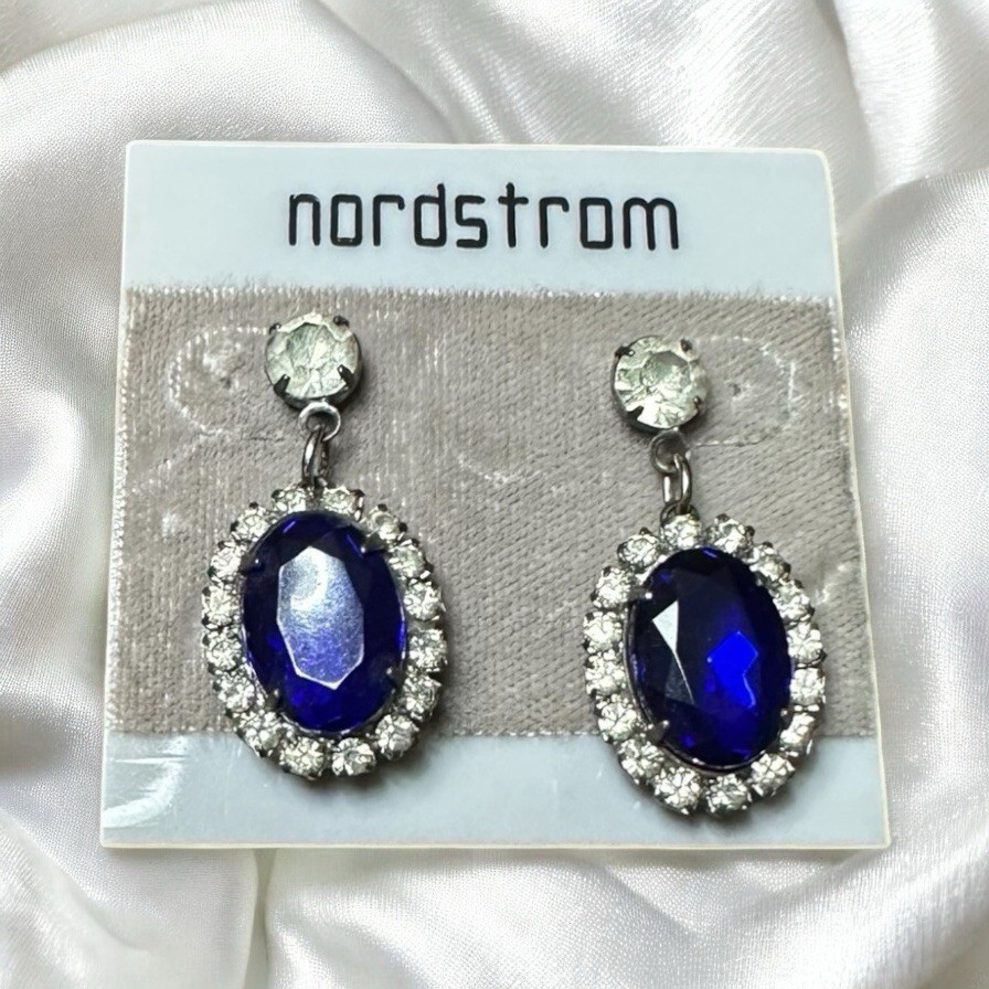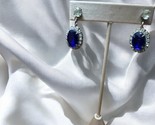 - Sapphire Earrings Dangle Drop Pierced Silver Tone Cubic Zirconia Princess Diana