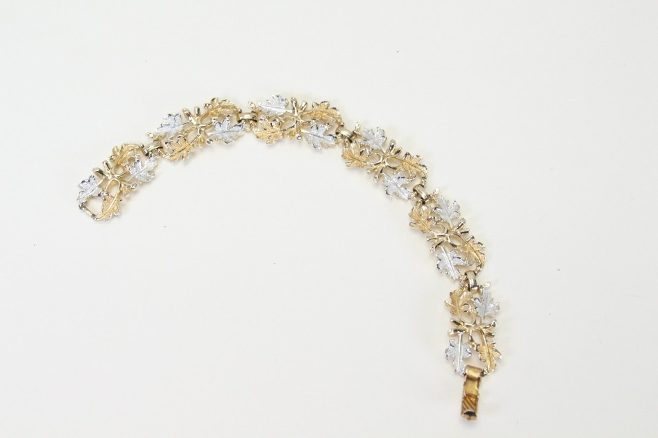 - Sarah Coventry Bracelet Grape Leaves 1958 50s Vintage Leaf Gold Silver Tone Link