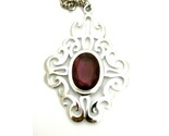 Stylish vintage 3" signed Sarah Coventry Arts and Crafts Style silver stone pendant necklace with a faceted amethyst glass stone in the center.