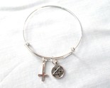 - Satanic Inverted Cross and Pentagram Star Charms On 8" Silver Bangle Bracelet