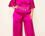 SATIN WRAP FRONT SHORT SLEEVE SMOCKED WAIST JUMPSUIT WITH CHAIN BELT