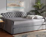 Savita Gray Velvet Fabric Button Tufted Full Size Daybed w/Trundle