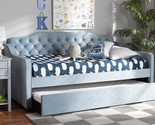- Savita Light Blue Velvet Fabric Button Tufted Twin Size Daybed w/Trundle