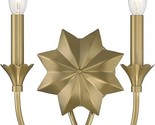 * DETAILS: Constructed of Metal; Features Bold 8-Pointed Star and Floral Bobeche Detailing, Finished in Warm Brass, Offering Elegant Simplicity with Two Candelabra Bulbs for a Timeless Look
