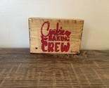 New with tags Savvy Creations wooden antique plaque featuring the phrase "Cookie Baking Crew" in bold red lettering.
