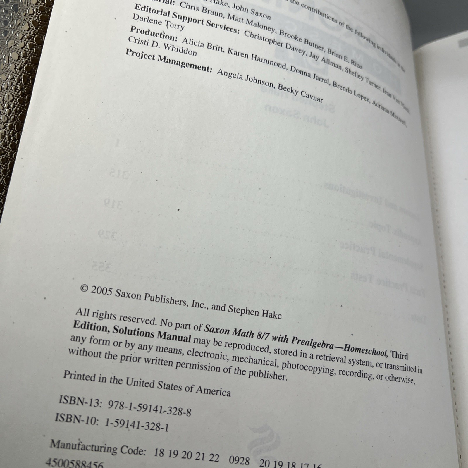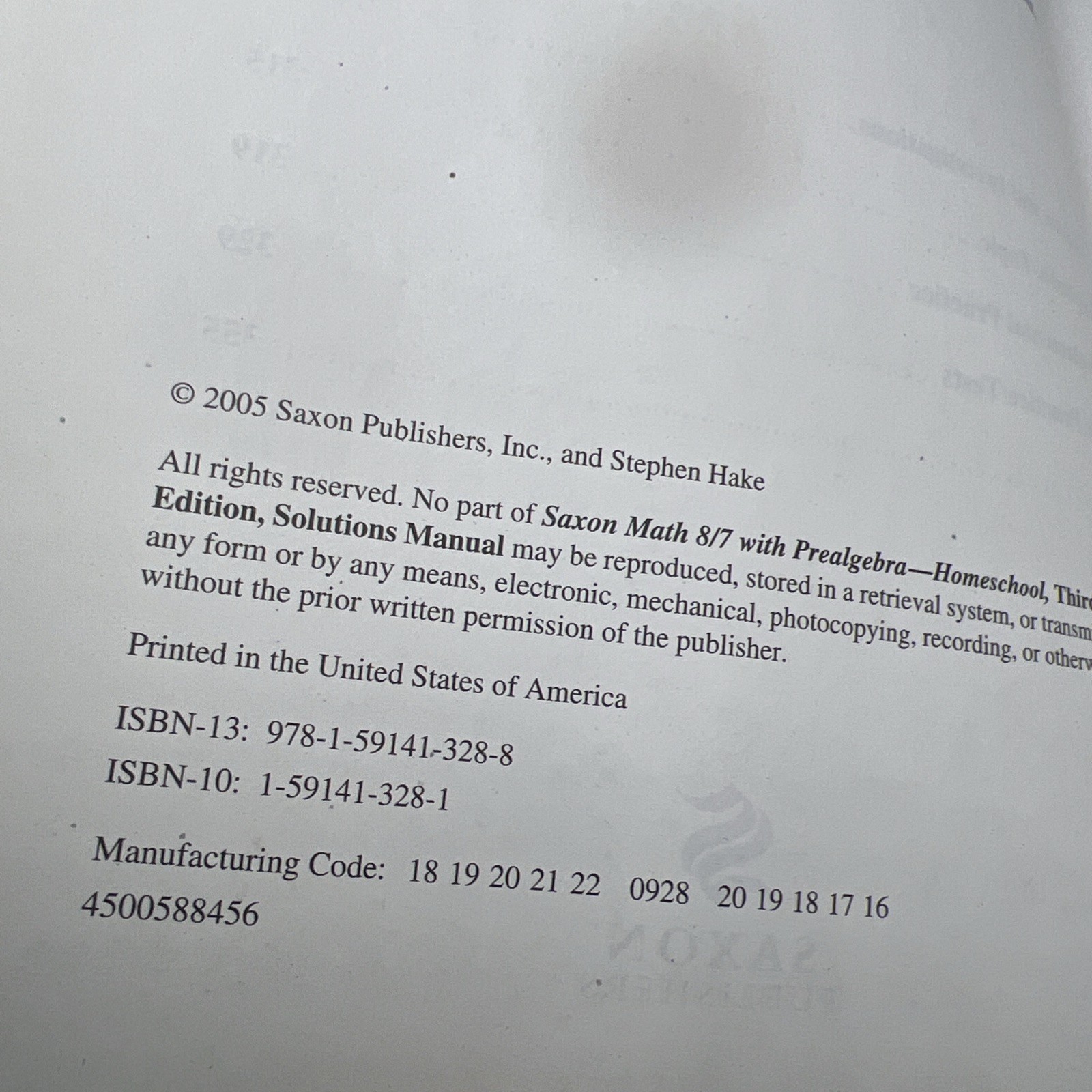 - Saxon Math Homeschool 8/7 Solutions Manual Paperback 2005