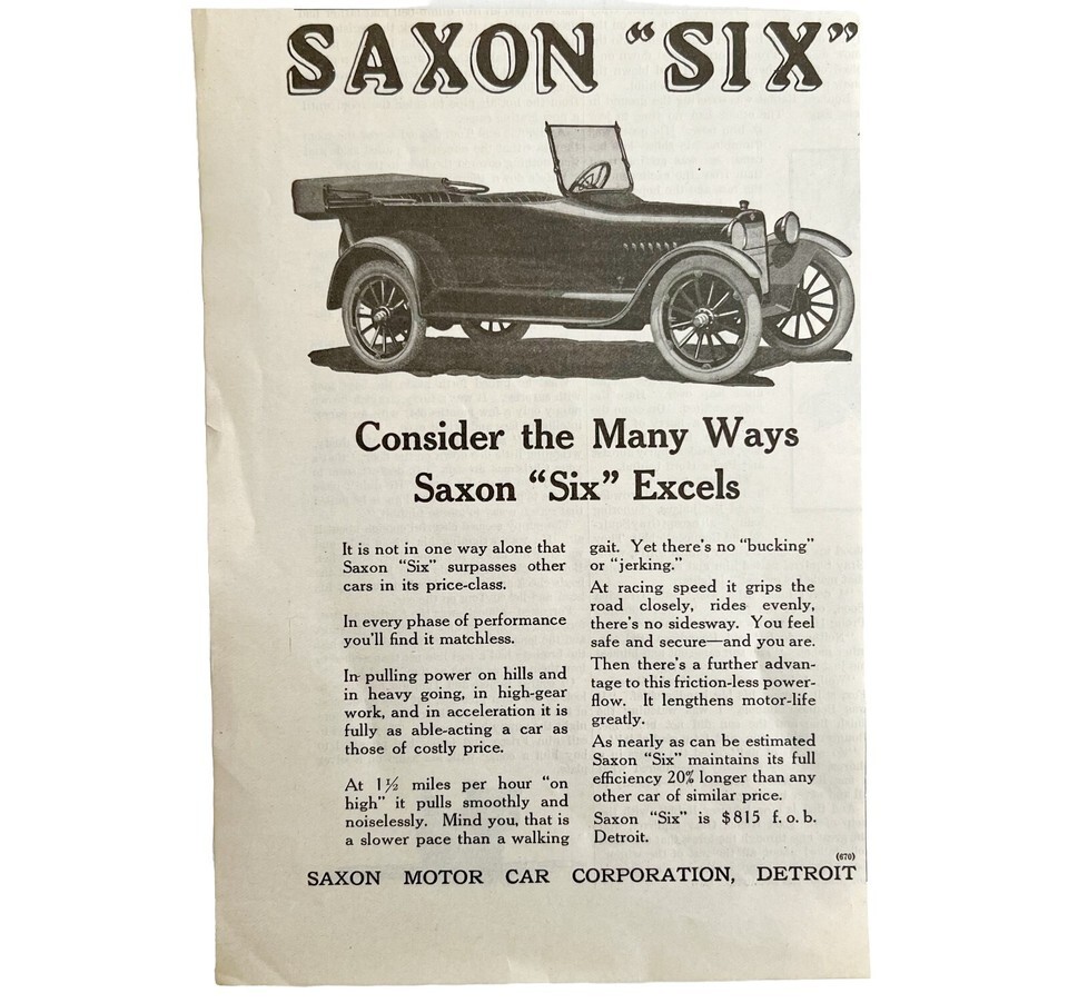 - Saxon Motor Car Company Touring Six 1916 Advertisement Automobilia DWII8