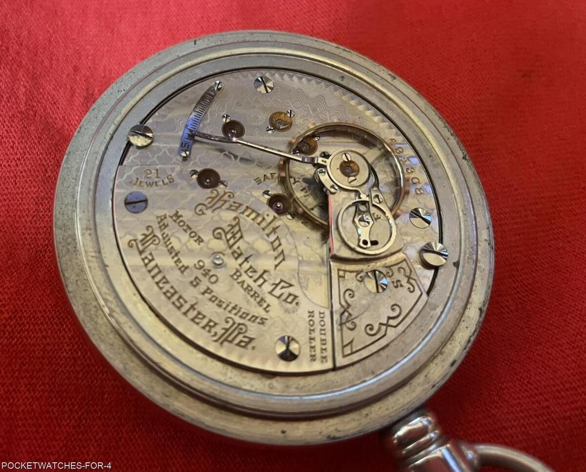 SCARCE 1911 GR 940 HAMILTON POCKET WATCH 21J 18s RAILROAD GRADE OPEN FACE RUNS