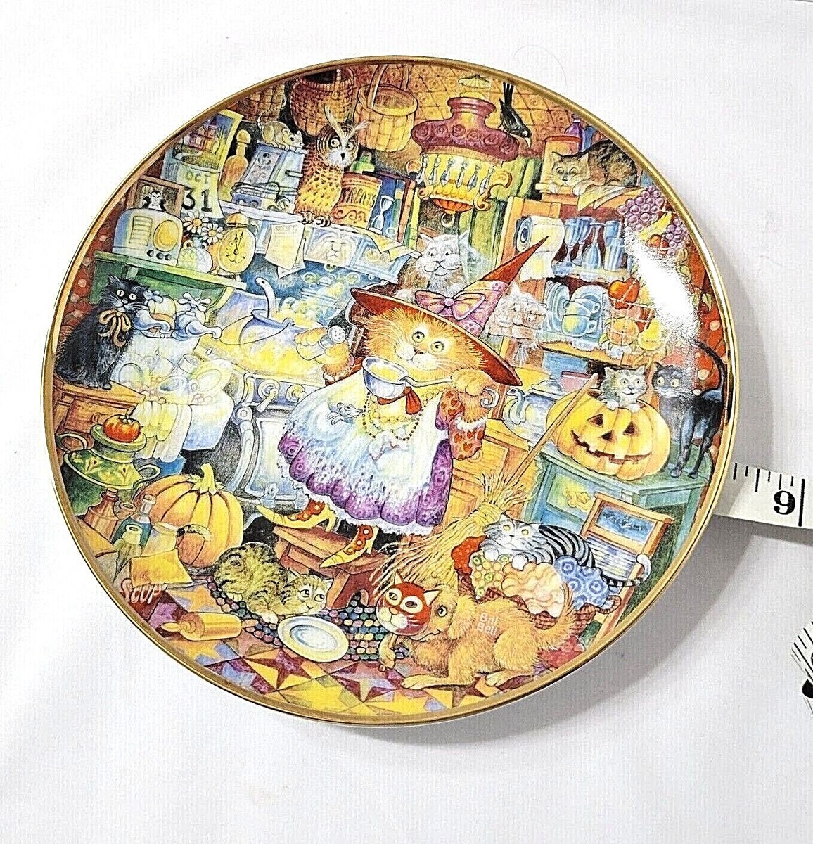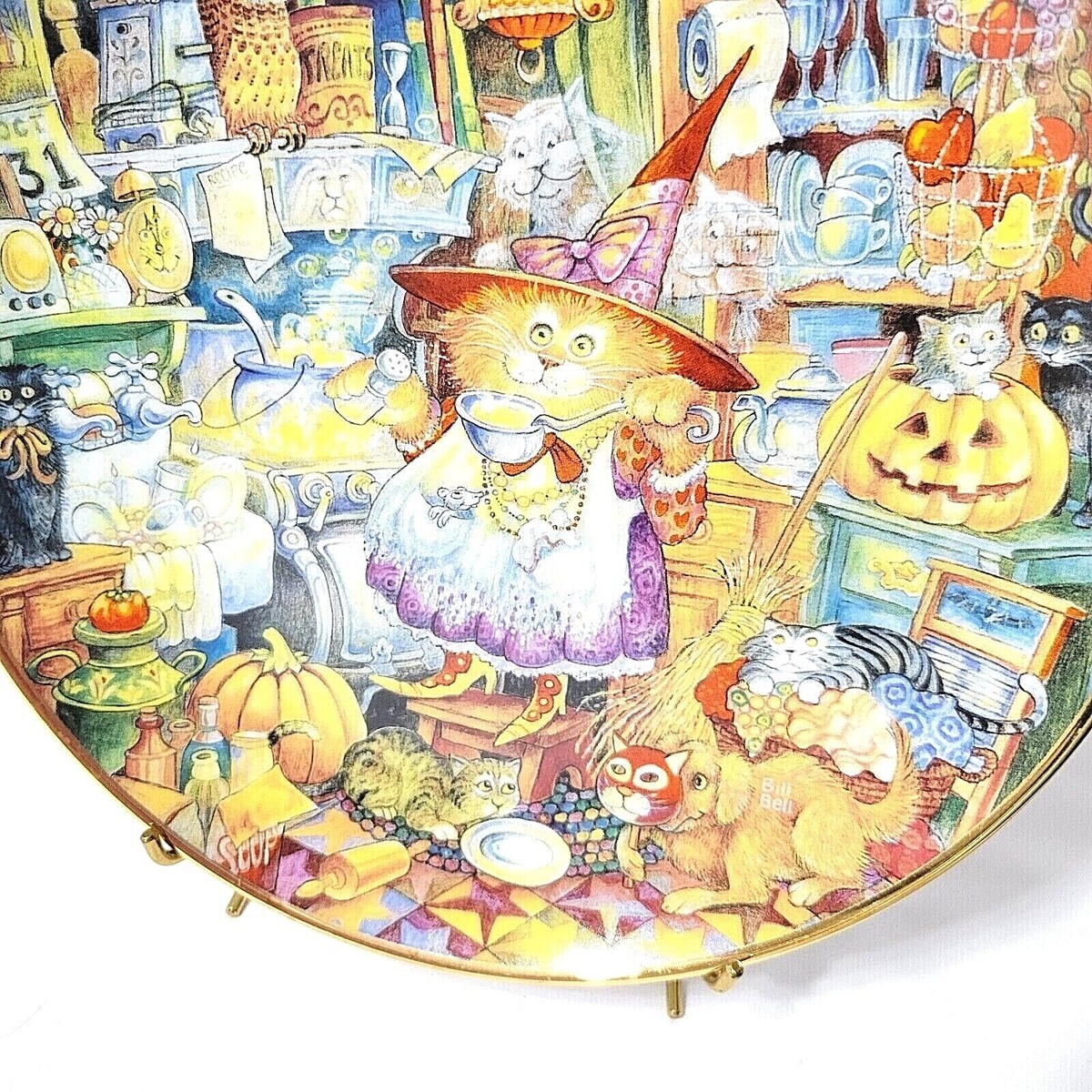 - Scaredy Cats Halloween Cat Witch Decor Display Plate Country Kitchen Bill Bell