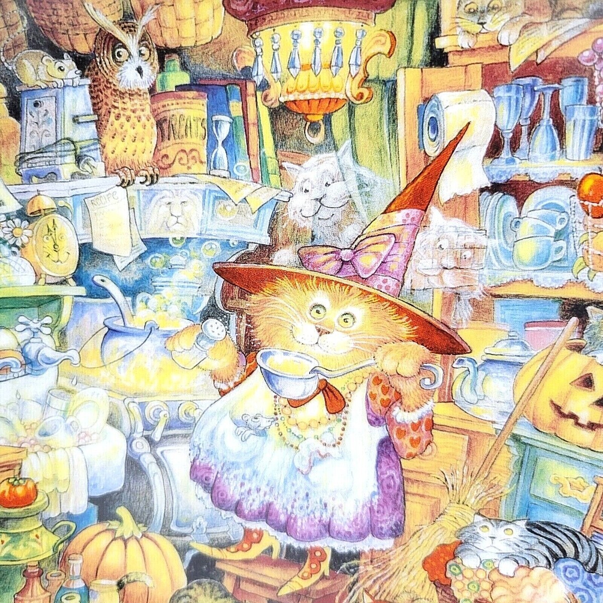 Features Cat Witch in country kitchen with so many details in this design, lots of cats and lots of fall decor