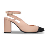 - Scarpe donna tacco pelle vegana nera beige slingback fibbia alla moda décolleté