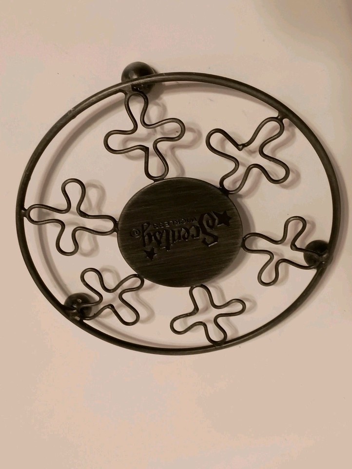 The Scentsy Round Metal Wax Warmer Trivet Stand Base features a rustic style with a bronze look, perfect for holding your favorite Scentsy wax warmer. Made of metal, this candle holder is designed in a round shape with and approximately 5-inch diameter. This trivet stand base not only adds a decorative touch to your home, but also provides a stable and stylish platform for your wax warmer to sit on while dispersing delightful scents throughout your space. See Pictures