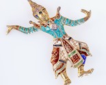 Schöne Sterling Silber Groß Emaille Siam Tänzer Brosche