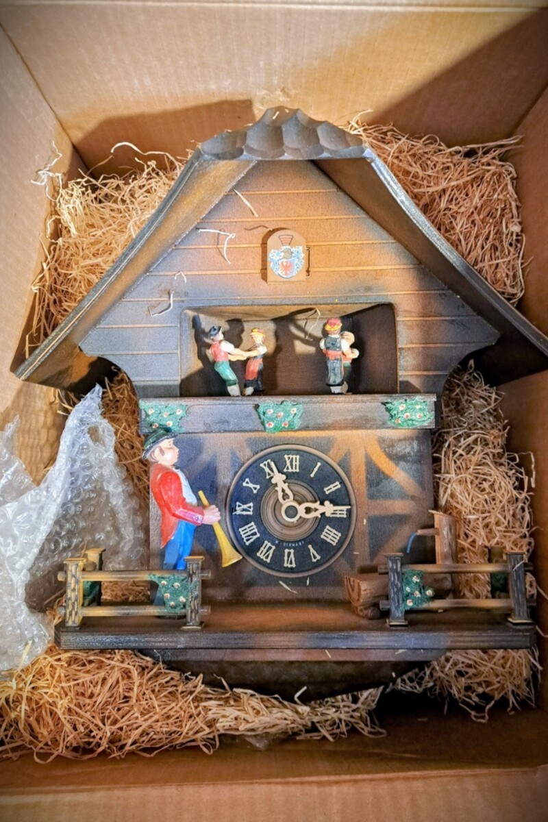 the box was before refurbishing the clock. Music box plays ?Kaiserwalzer?