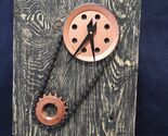 Artizay Naturholz-Steampunk-Retro-Zyklus-Wanduhr mit Kette und Spule im Vintage-Stil, recycelte Heimdekoration. Recycelt aus natürlichem Kiefernholz mit einer aufgearbeiteten Fahrradkette und Spule. Moderne Distressed-Lackierung im Steampunk- und Retro-Stil mit Kupferspule und schwarzer Kette, ein absolutes Meisterwerk für sich. Es wiegt 2 kg und hat die Abmessungen H 18'' B 1'' L 10''. Hat einen Haken auf der Rückseite zum Aufhangen an jeder Oberflache. Die Uhr ist zur sicheren Handhabung durch Kuriere in Luftpolsterfolie, Thermocol und einem Wellpappkarton verpackt.