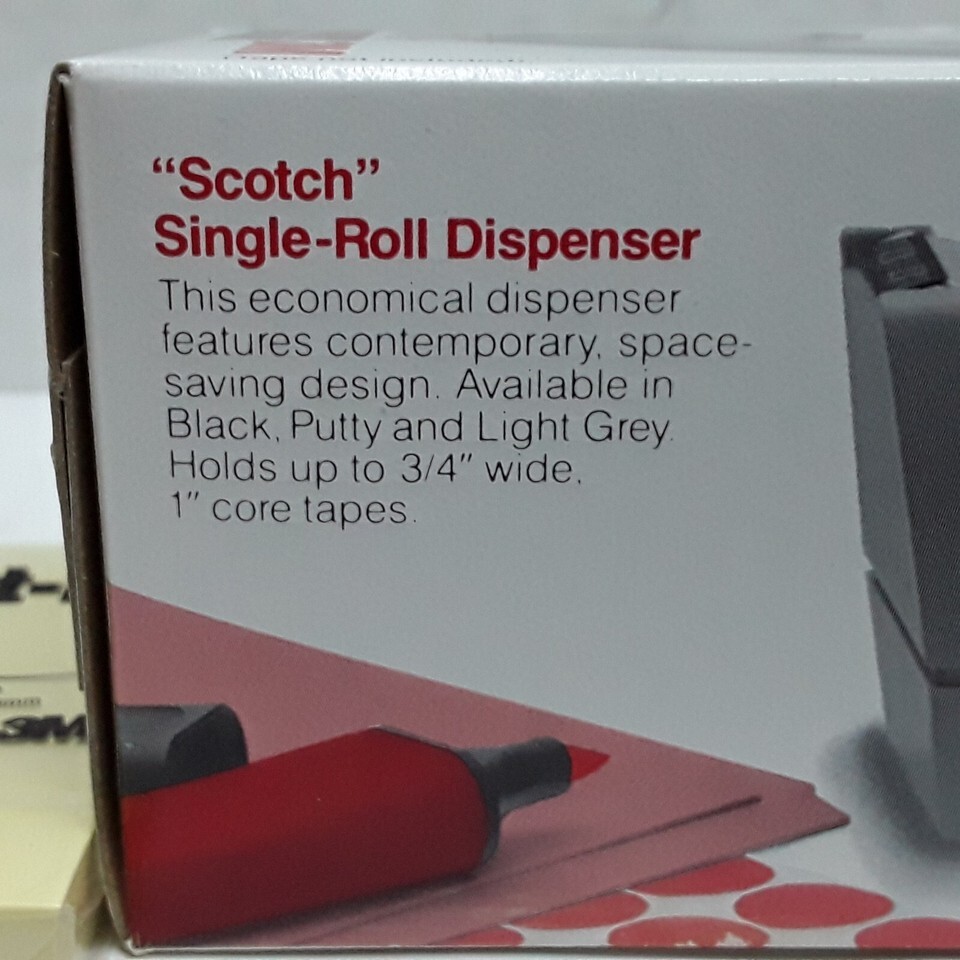 Scotch single rule tape dispenser, holds up to 3/4 in wide tape rolls. Brand new unopened.