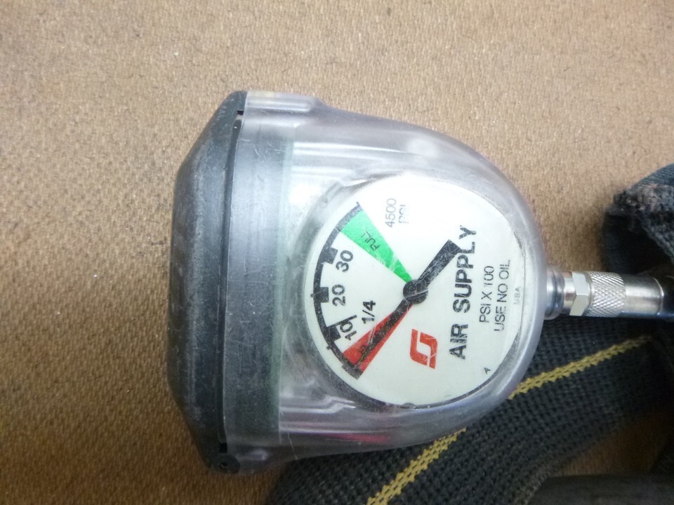 This set-up came from a city fire department. Other than scratches and scuffs, it looks to be in good condition. This comes with a p/n 200031-04 pressure reducer, p/n 804370-02 EZ-Flo regulator, p/n 805954-Series Gauge and the belts and hose shown in the pictures.