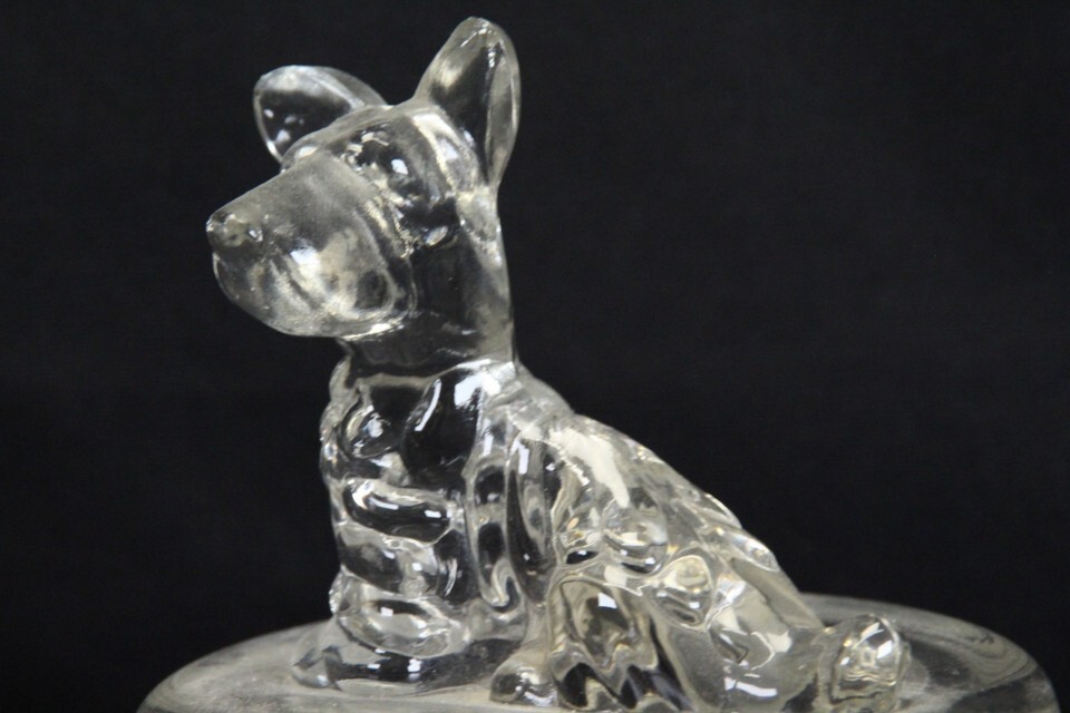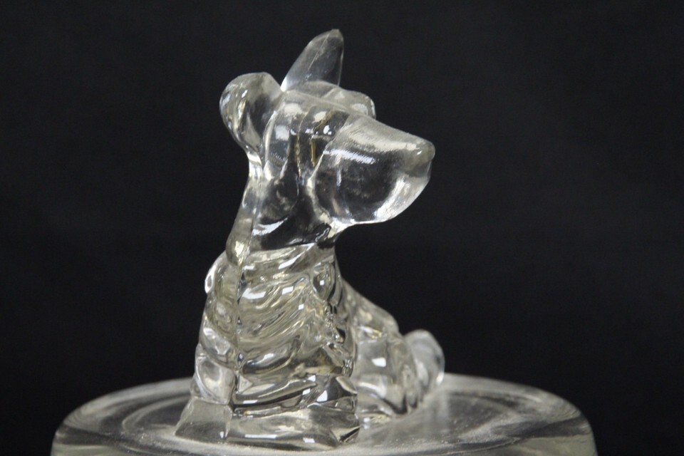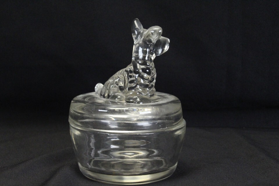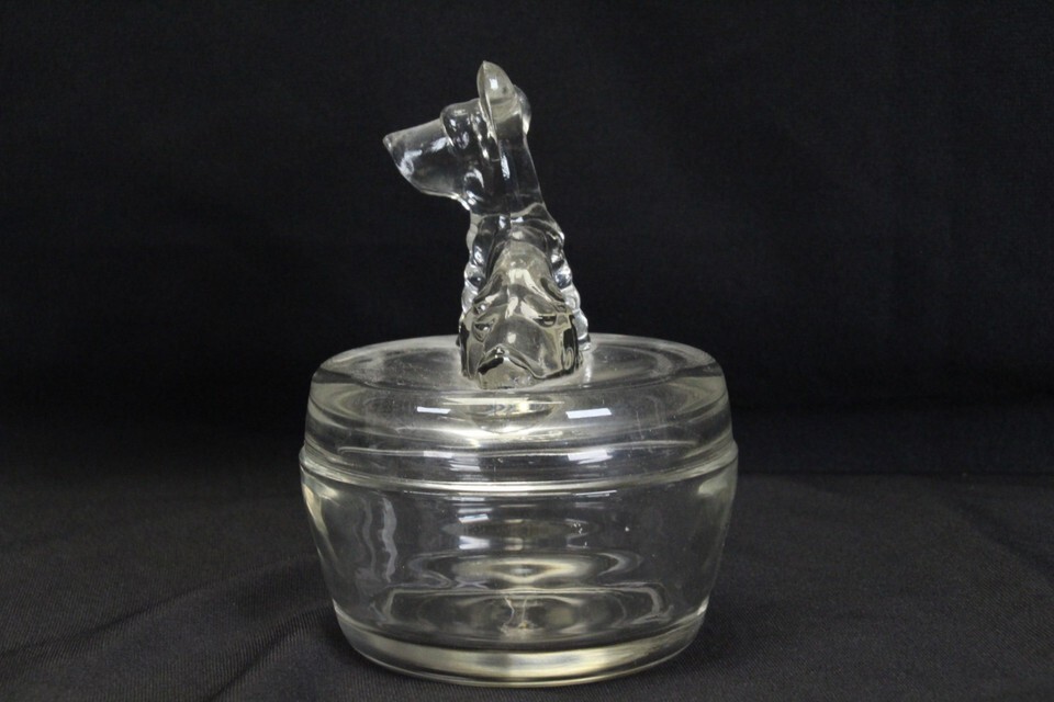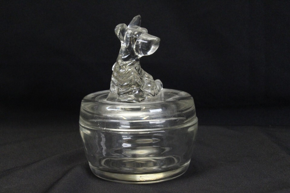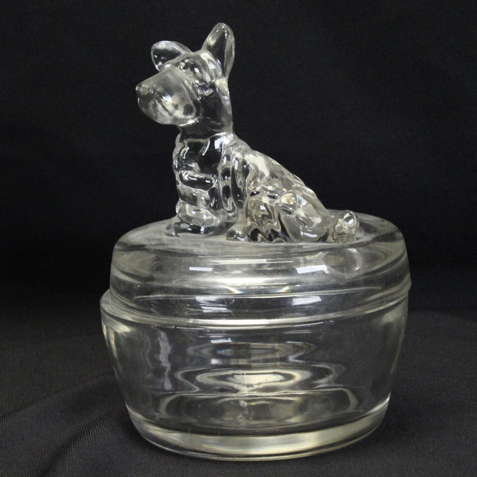 - Scottie Dog Jeanette Glass Lid Covered Candy Dish Powder Jar Vintage
