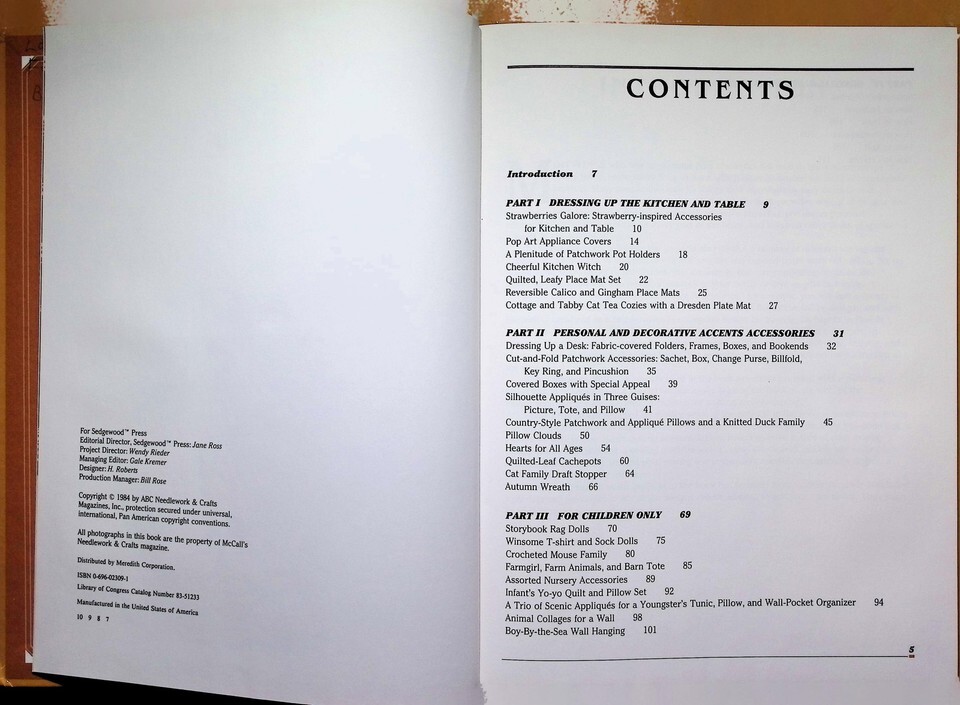 Discover a treasure trove of 1980s home crafting with 'Scrap Crafts' from Sedgewood Press. This vintage pattern book provides detailed instructions for a variety of charming projects, from kitchen accessories like pot holders and place mats to decorative items like small quilts and wall hangings. Published by Meredith Corporation, known for McCall's Needlework Crafts magazine, this collection captures the heart of 80s country and folk art style. Perfect for quilters, sewers, and collectors seeking authentic vintage patterns.