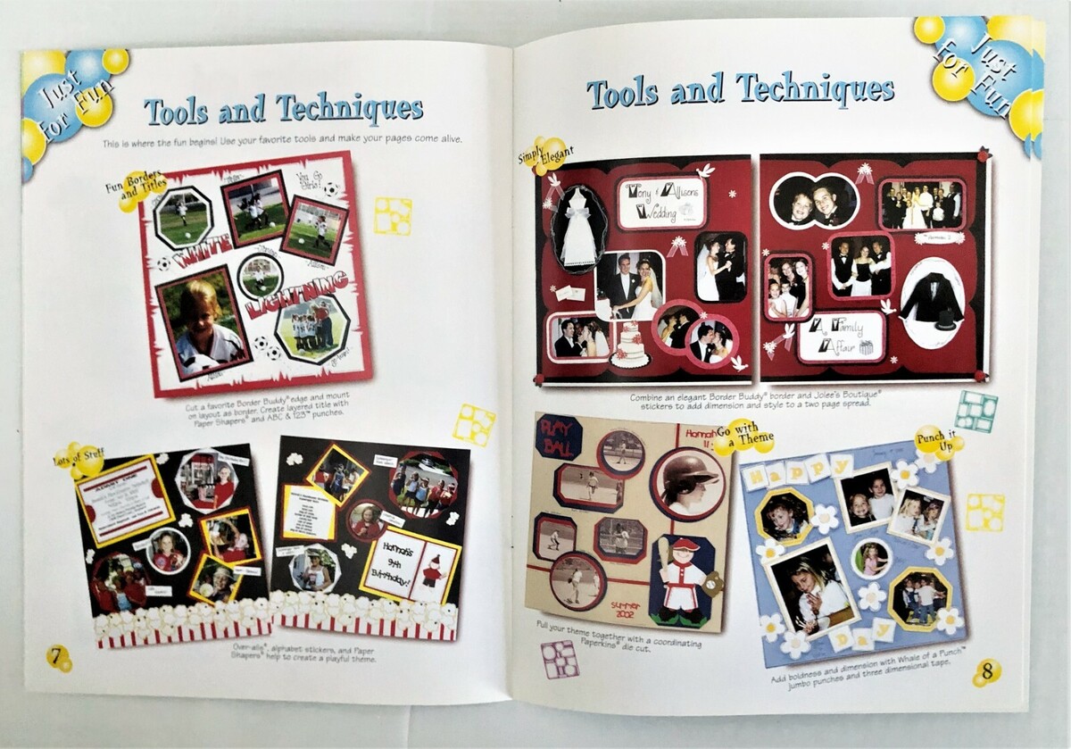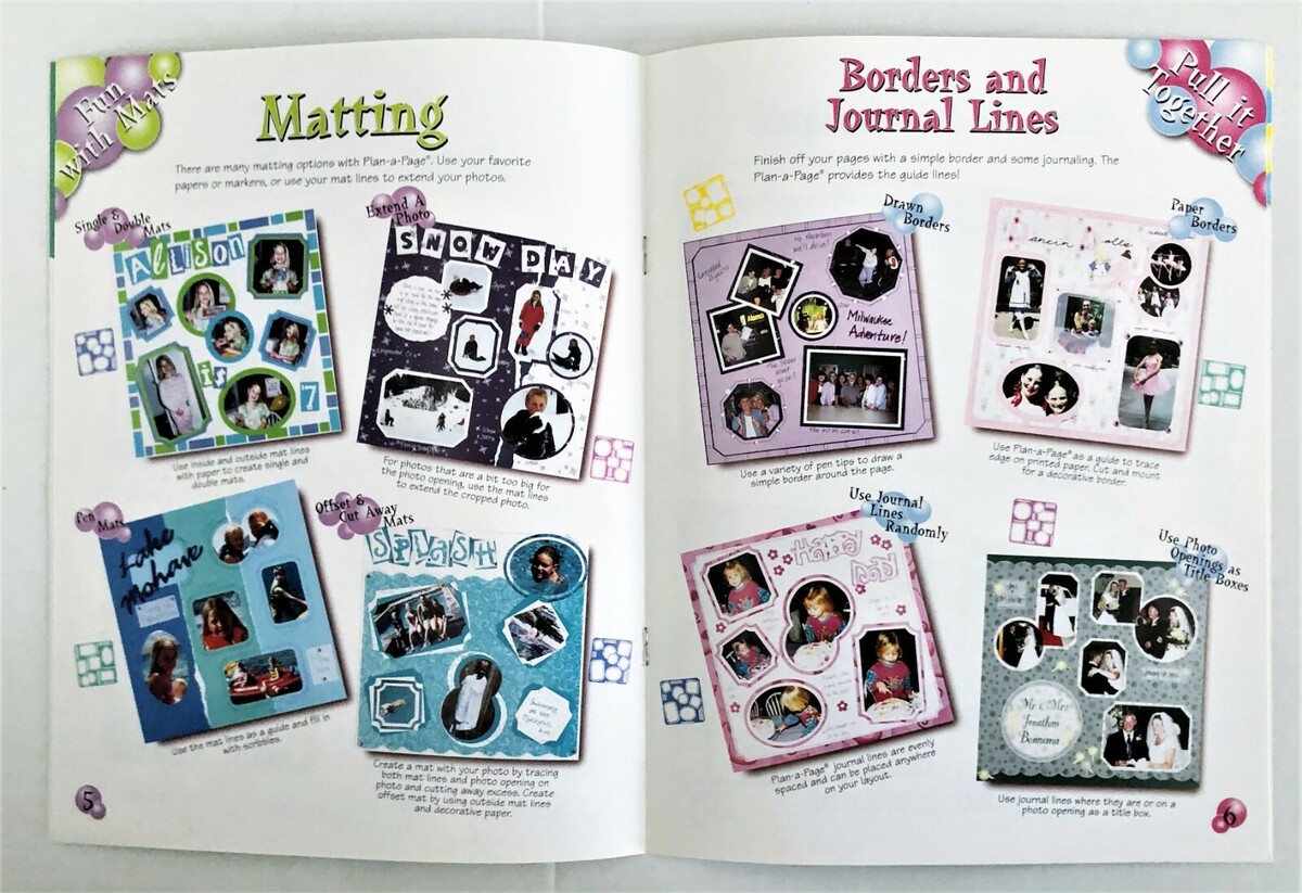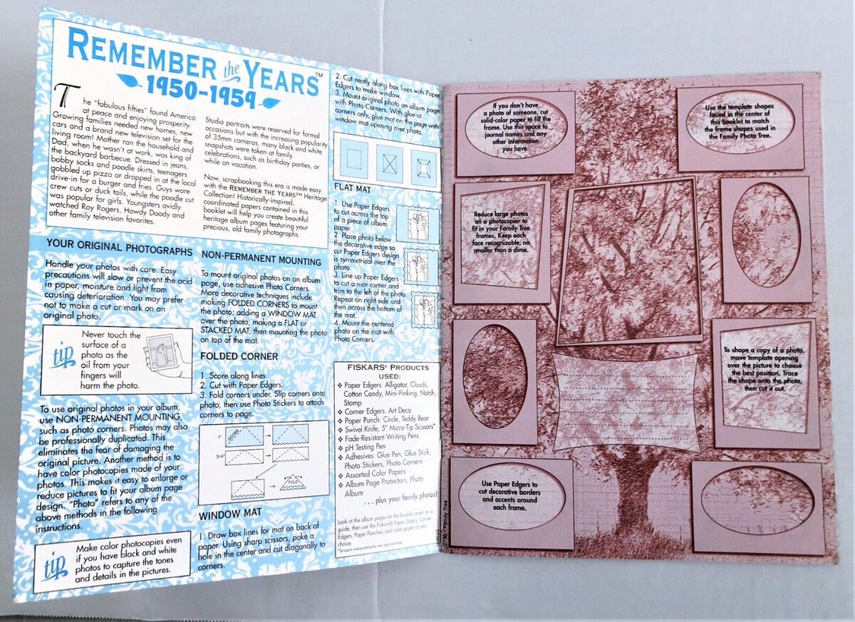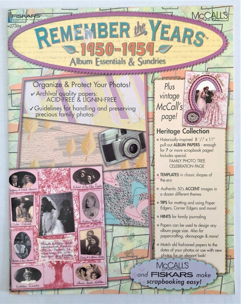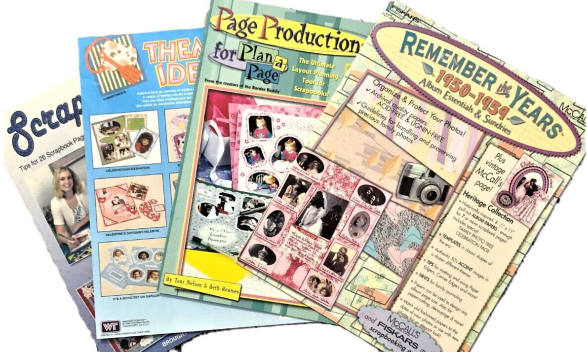 Lot of scrapbooking booklets and paper. This set comes with four booklets, Scrapbook ABC is 14 pages, Scrapbooking is 5 pages and plan a page is 10 pages. Each of these booklets have different page layouts and ideas. The Remember the Years 1950-1959 booklet has 6 vintage 1950's style scrapbook pages.