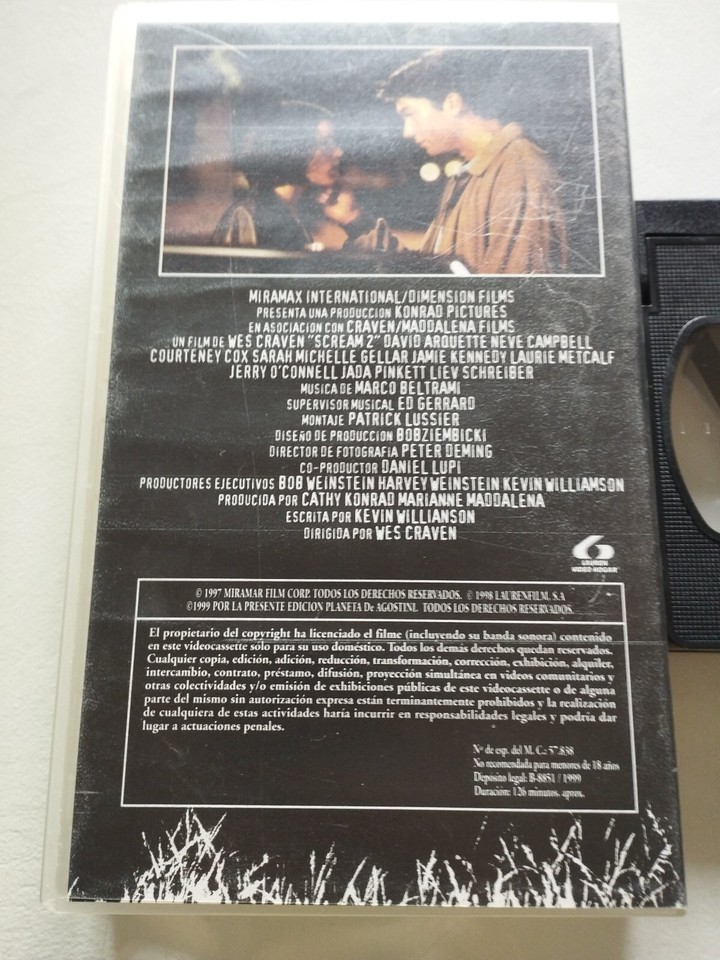 - Scream 2 Wes Craven Courteney Cox David Arquette - VHS Cassette Tape Spanish-...