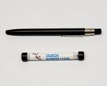 The Scripto BLACK Mechanical Pencil is a vintage writing instrument made of plastic in the United States. It features a thick lead that functions like a grease crayon marker, making it versatile for various writing tasks. With its unique design and historical charm, this pencil is a sought-after collectible for pen and writing instrument enthusiasts.