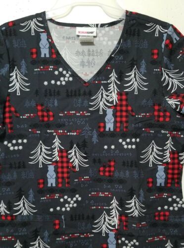 - Scrubstar "Plaid Pals" Women's V-Neck Print Scrub Top Multi Size S/CH