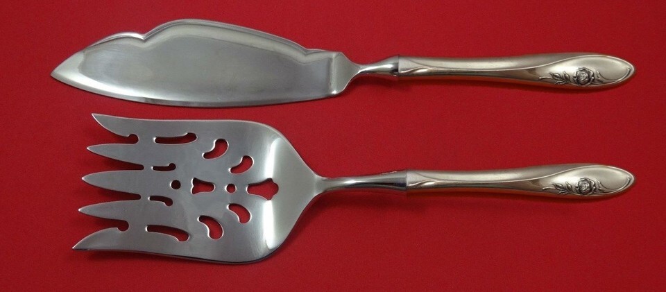 - Sculptured Rose by Towle Sterling Silver Fish Serving Set 2 Piece Custom HHWS