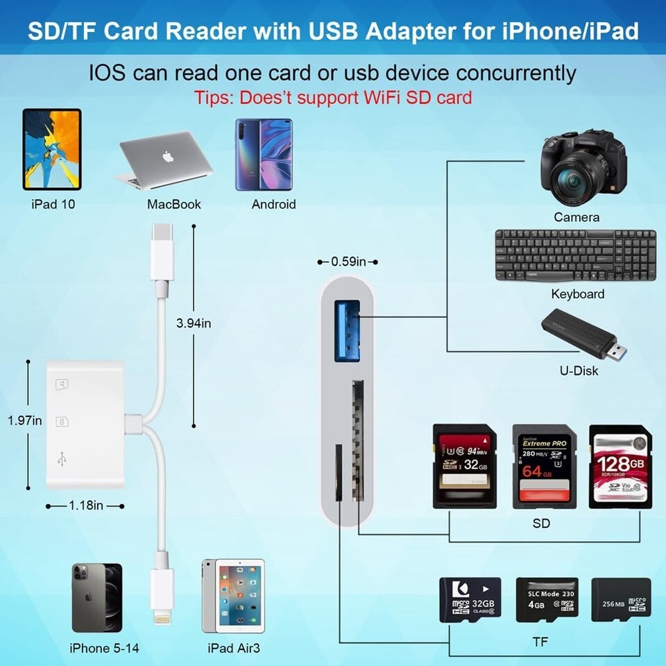 - SD Card Reader for IPhone, IPad, USB C Dual Port TF SD USB Memory Card Adapter