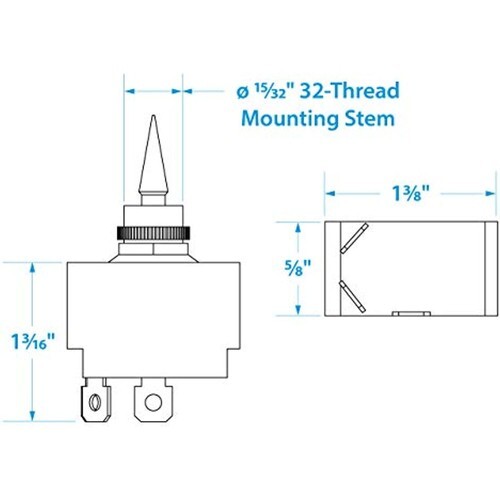 Two-position on/off toggle switch is suitable for the operation of running and anchor lights, bilge pumps, blowers and baitwell pumps