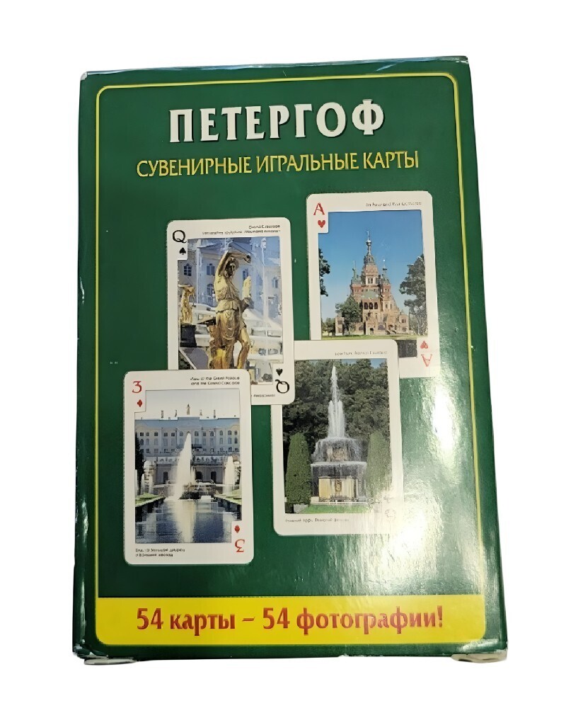 54 Unique playing cards of the famous Peterhof Museum in St Petersburg, Russia. These cards are a great gift for lovers of card games and solitaire games, as well as Soviet symbols, retro, etc.
