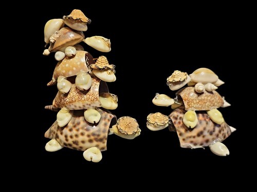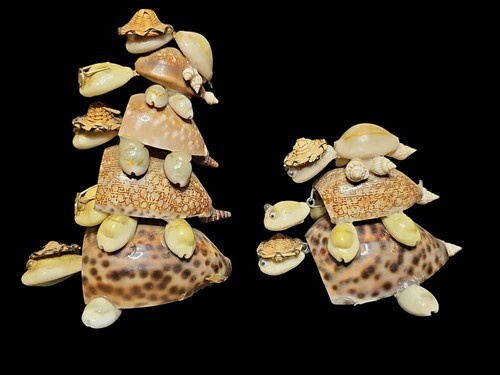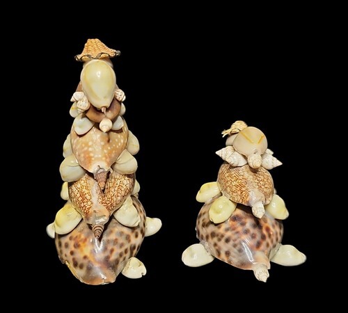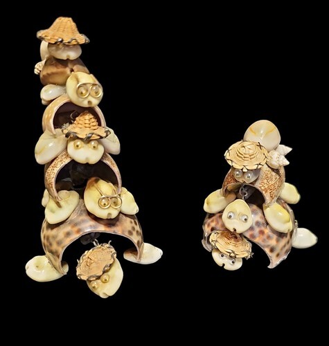 UP FOR SALE: This sale is for a set of Seashell Art Nodding Turtles Beach Combers Glasses Hats Souvenir Philippines VTG Bobblehead Totem Style.