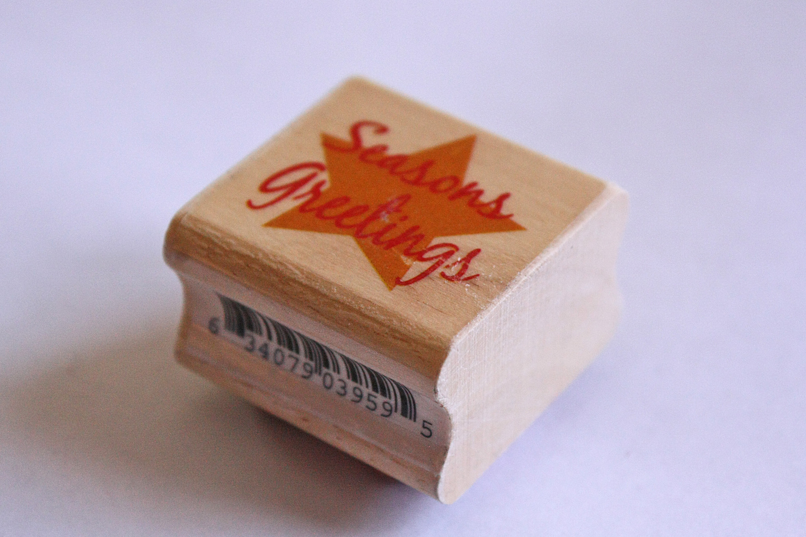 - Seasons Greetings and Star Phrase Mounted Rubber Stamp, Christmas Stamp