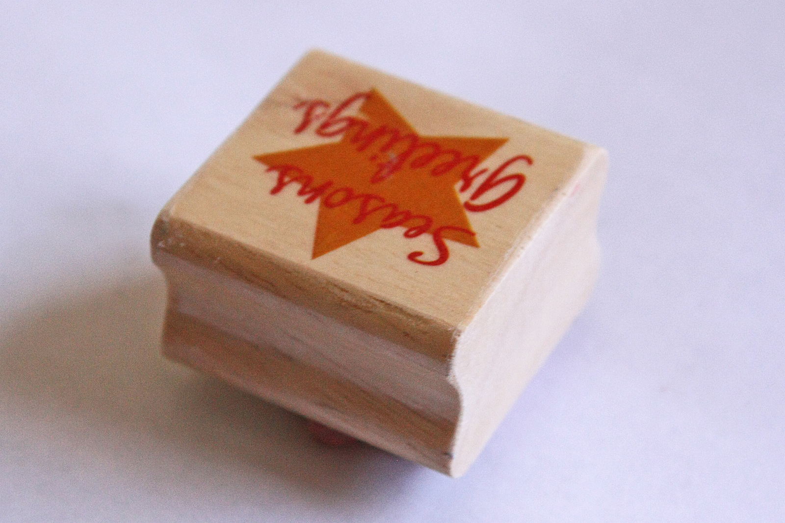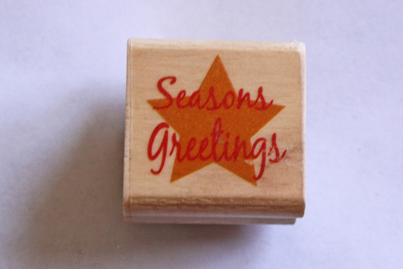 Seasons Greetings and Star Phrase Mounted Rubber Stamp, Christmas Stamp