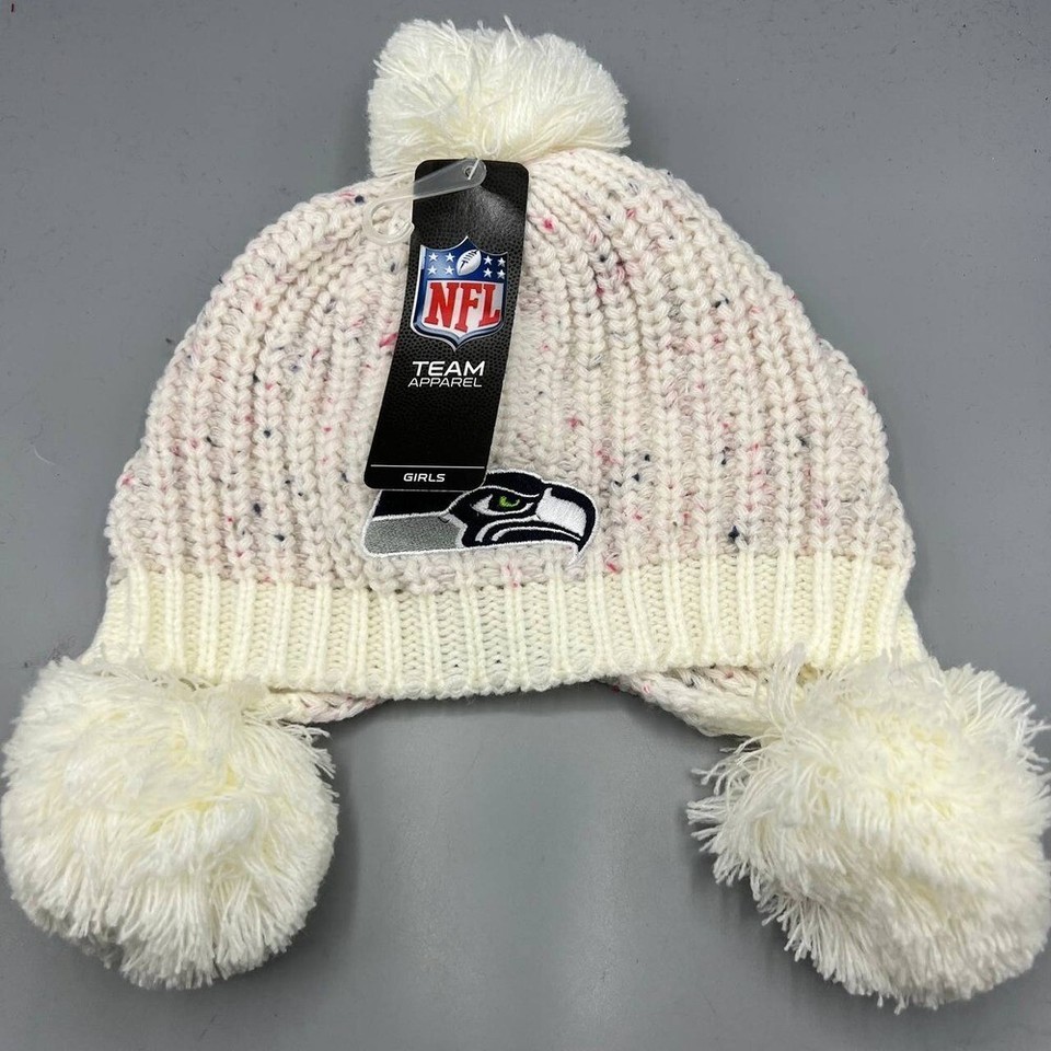- Seattle Seahawks Hat Girl White Knitted NFL Beanie Pom Pom Cap New