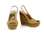 - Sebastian Brown Leather Bronze Wedge Heel Sandal Platform Peep Toe Shoes SZ 36.5