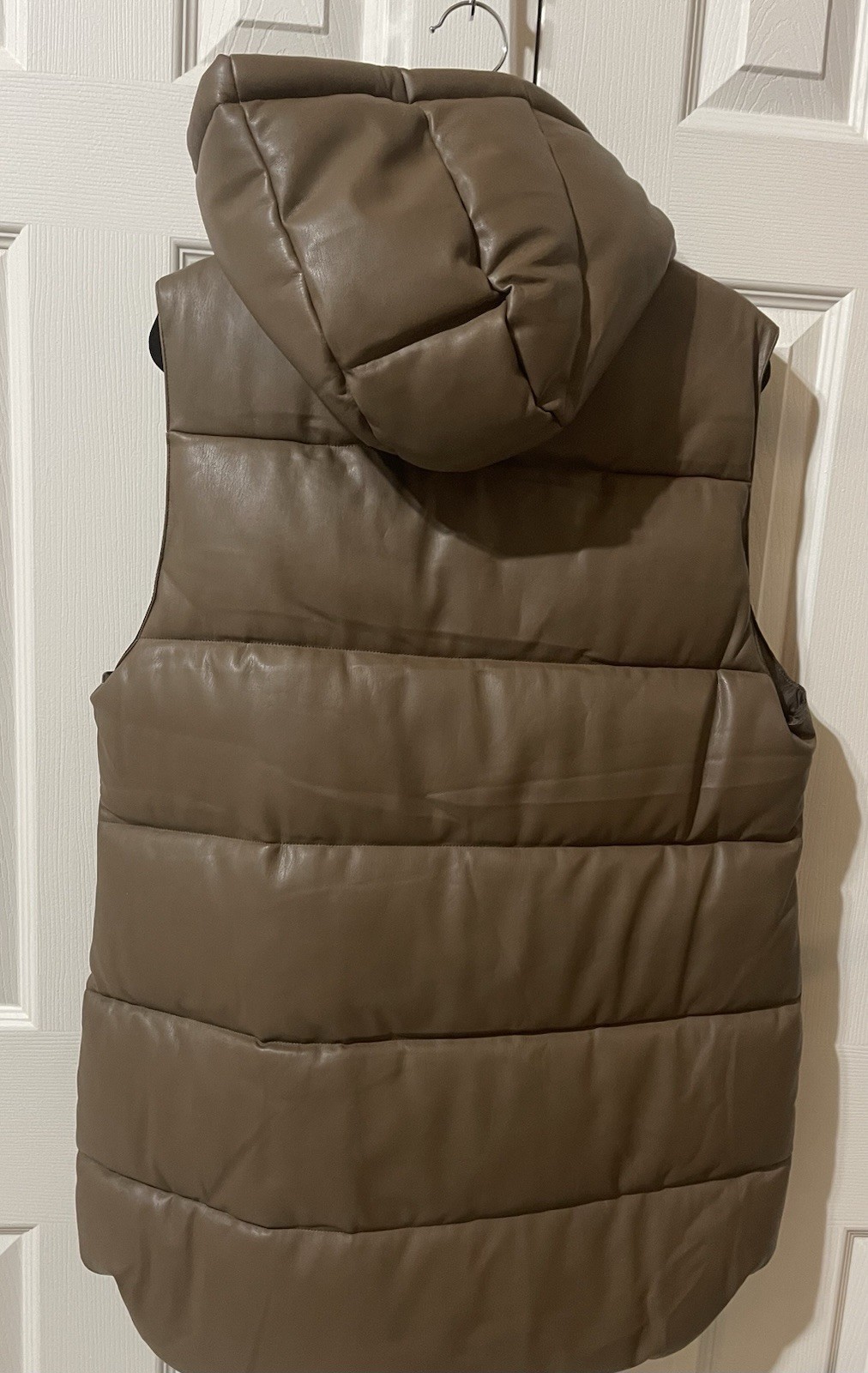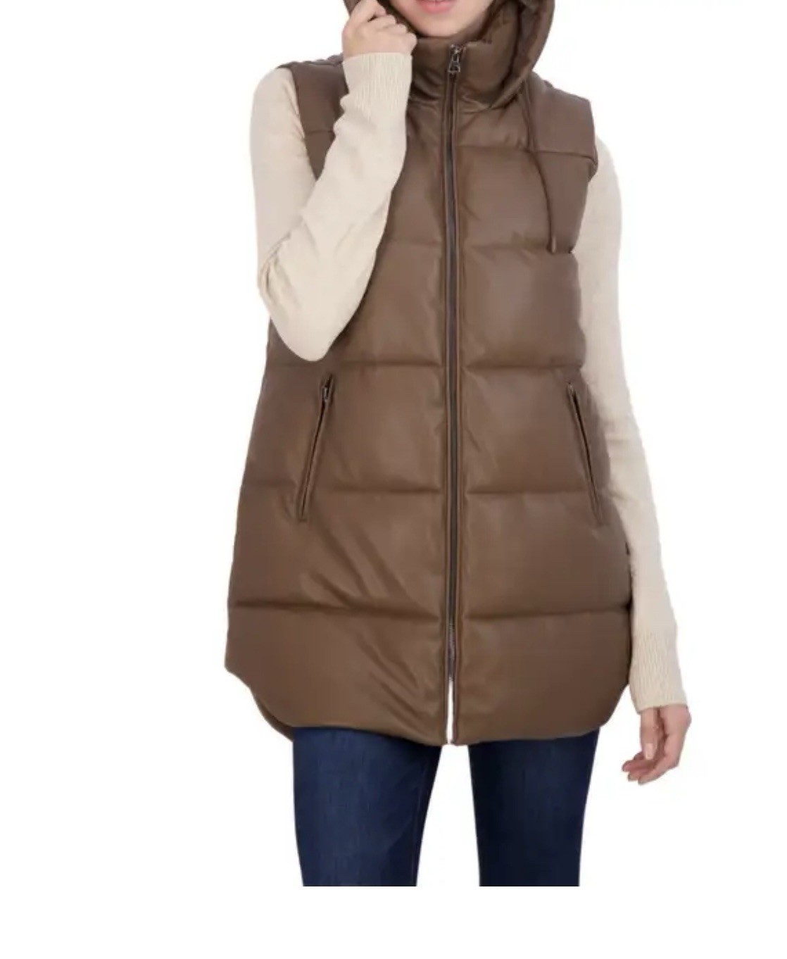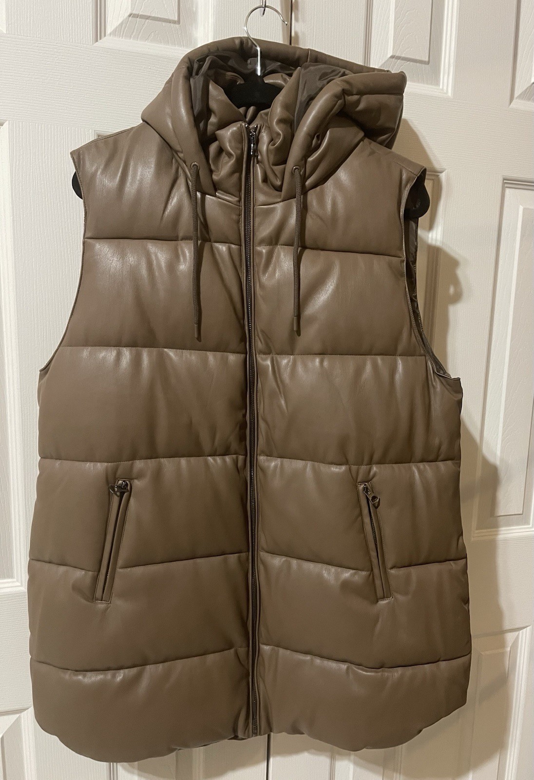 - Sebby Collection Women’s Puffer Faux Leather Vest with Hood BROWN SZ XL NDEW