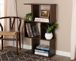 The countless possibilities for display and organization are easy to imagine with the Kyoto bookcase. The modern and contemporary-inspired design incorporates mid-century elements into its staggered, geometric layout. The Kyoto's engineered wood frame is finished in a warm brown, contrasted with dark gray back panels of the more narrow display compartments. The bookcase features three layers of shelves, each with a wider open space, and a smaller edge compartment with back panels. This opens up the possibilities for storage solutions and creative decor display options. This charming and modern shelf will add a delightful energy to your livingroom, guest room, bedroom, or even a home or private office. Made in Malaysia, the Kyoto requires assembly.