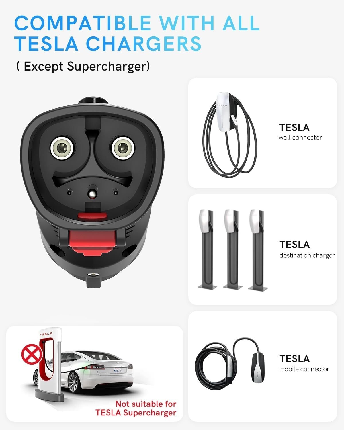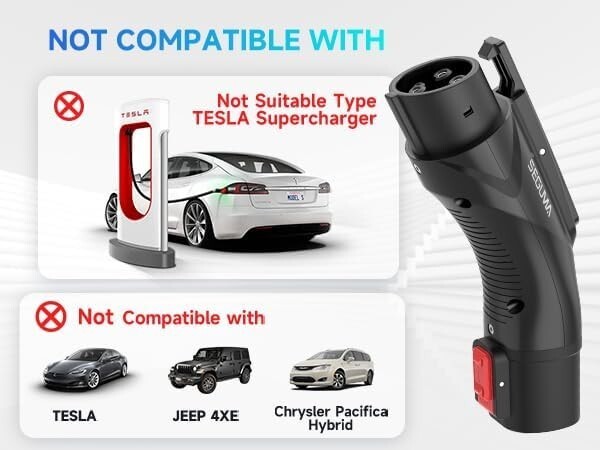 NOT compatible with Tesla Supercharger and Level 3 Charger Stations; Not workable for jeep wrangler 4xe