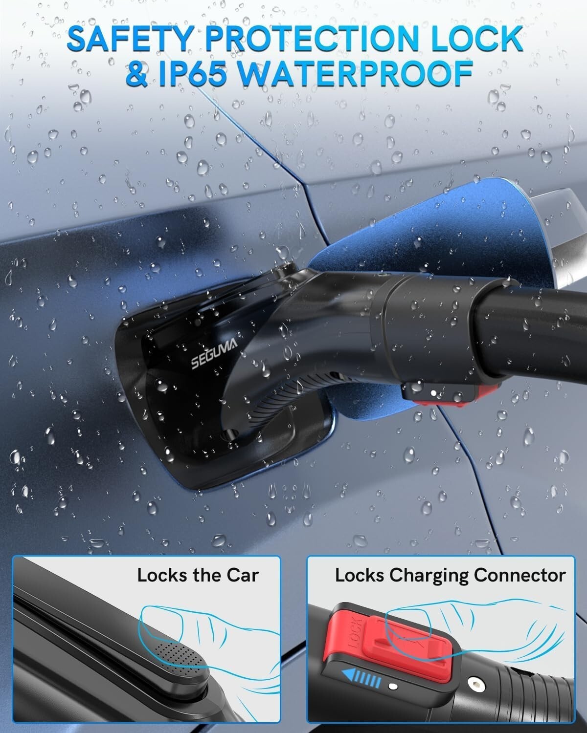 Seguma EV Charging Adapter for Tesla to J1772, Up to 60Amp with Safety Lock, IP6