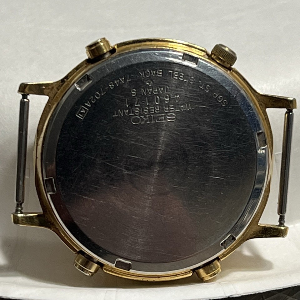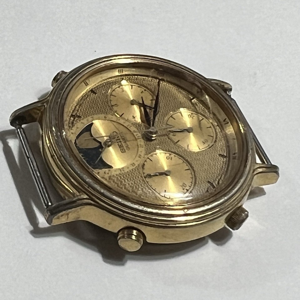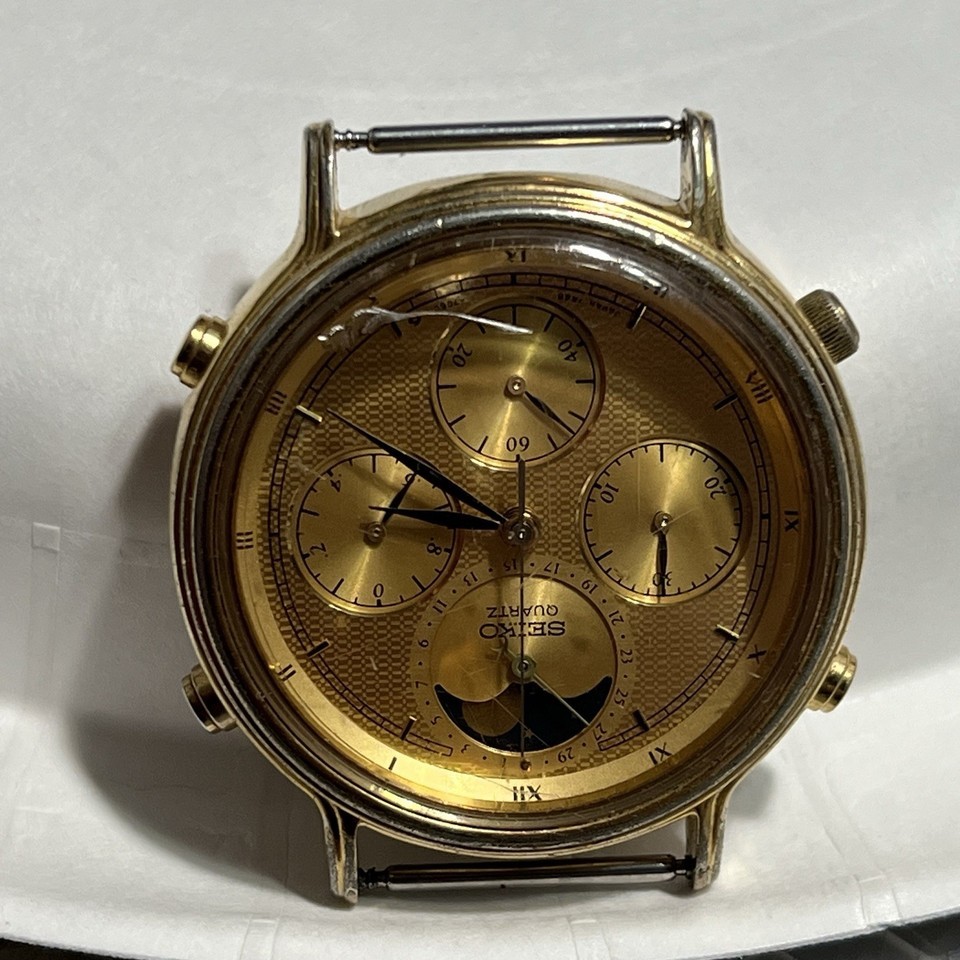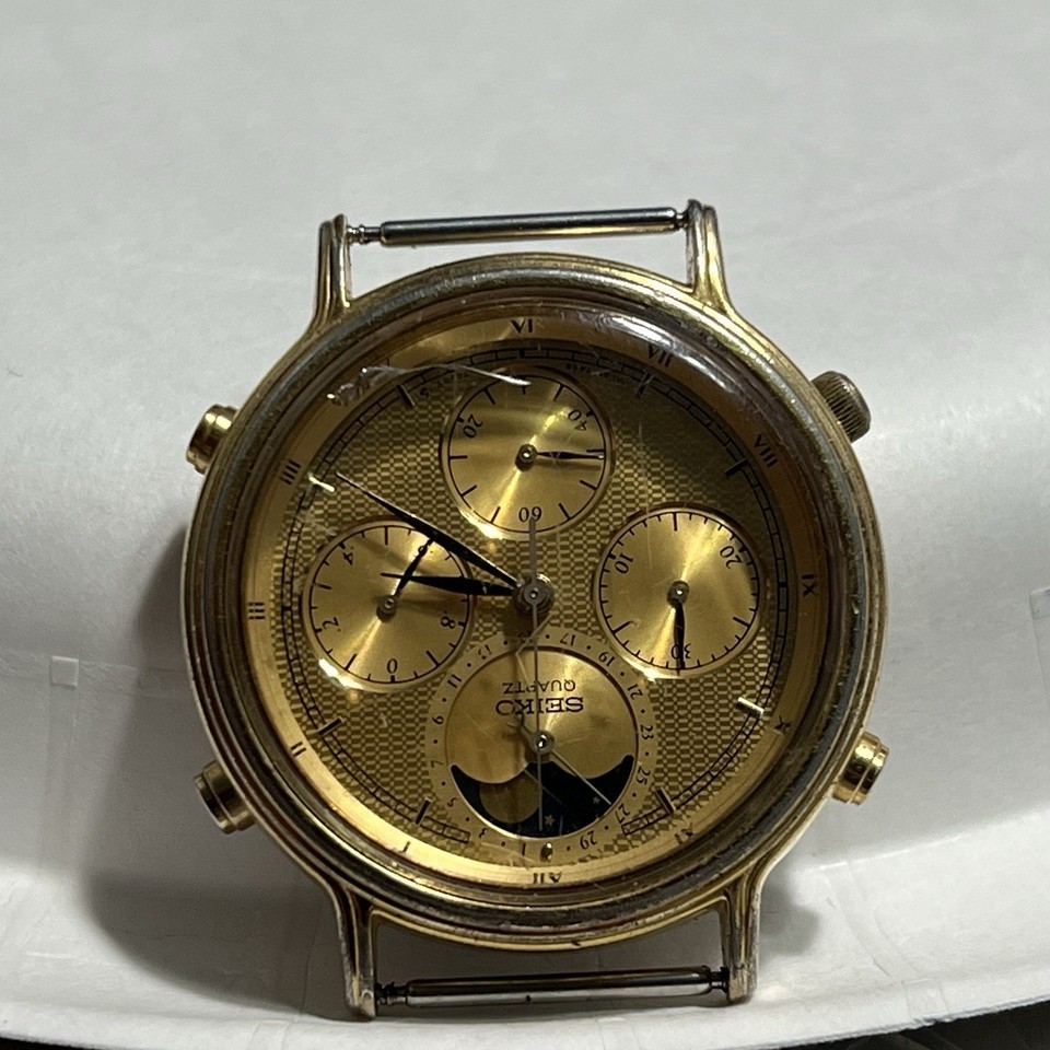 - Seiko 7A48-702A Quartz Moonphase Chronograph Gold Honeycomb Dial 37mm Case VTG