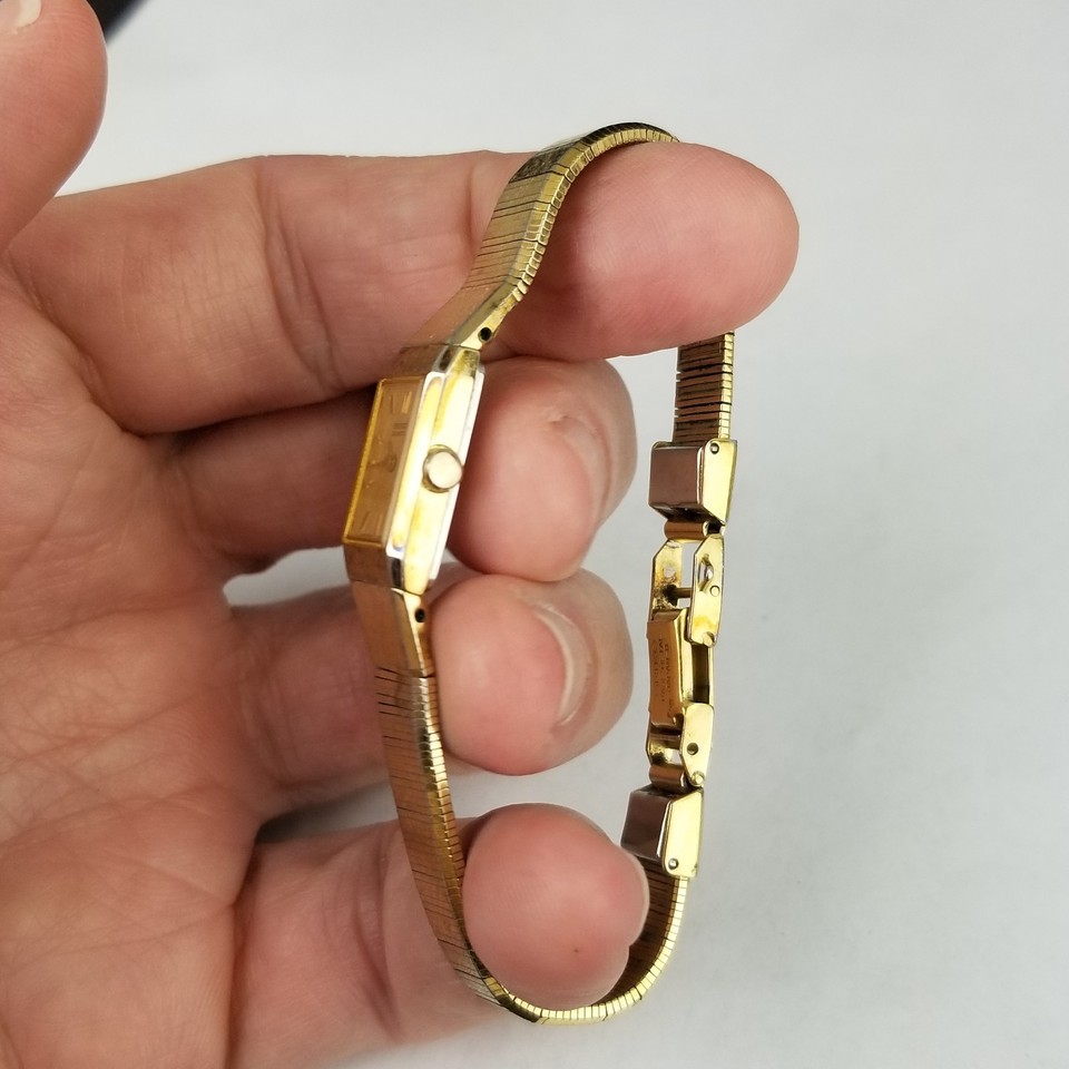 - Seiko Tank Watch Women 12mm Gold Dial Gold Tone Rectangle 2E20-5029