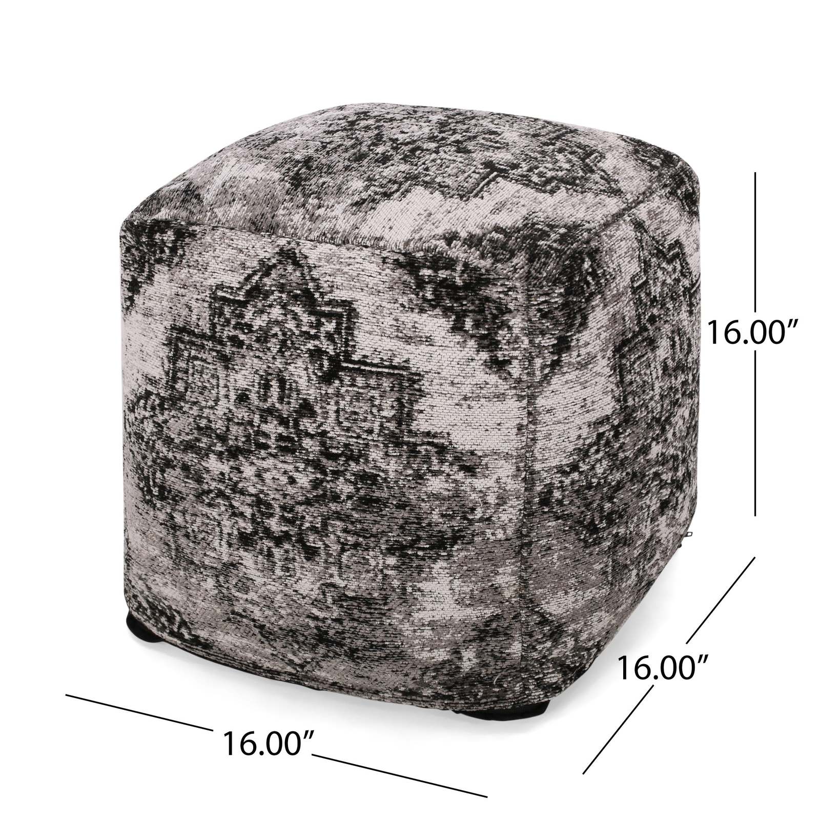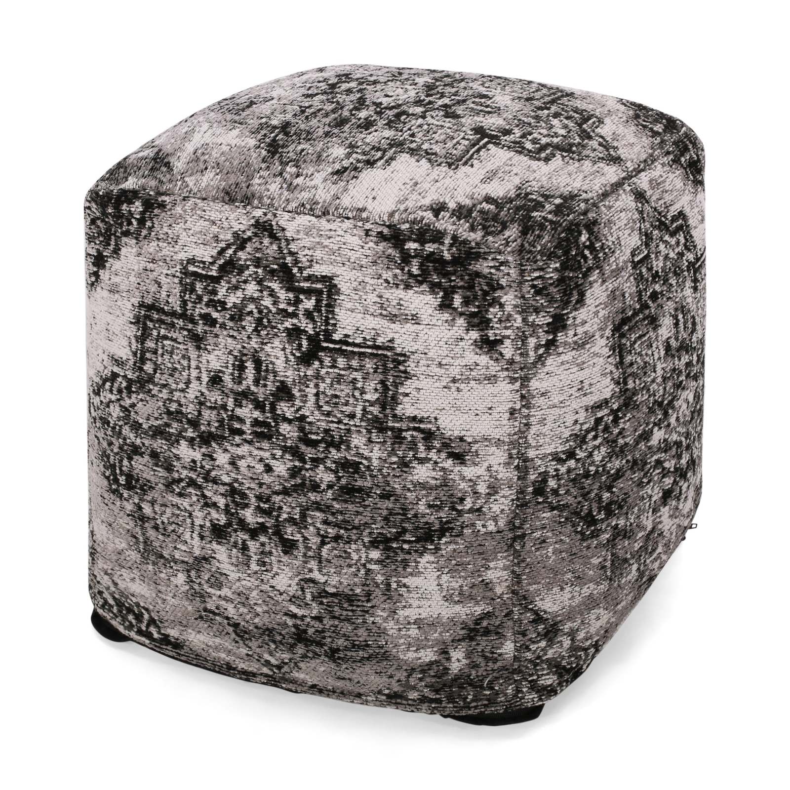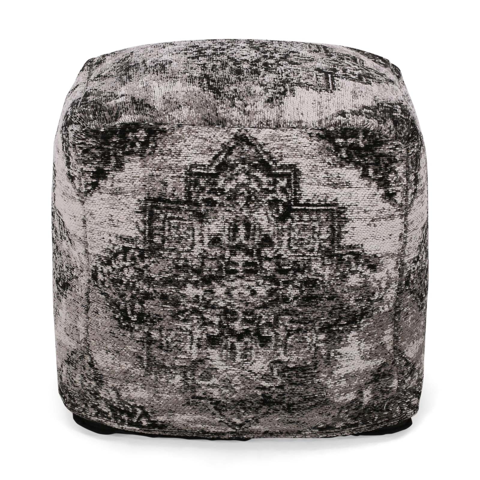 - Sellek Square Pouf: Black & Beige Ottoman - Stylish Home Decor Seating