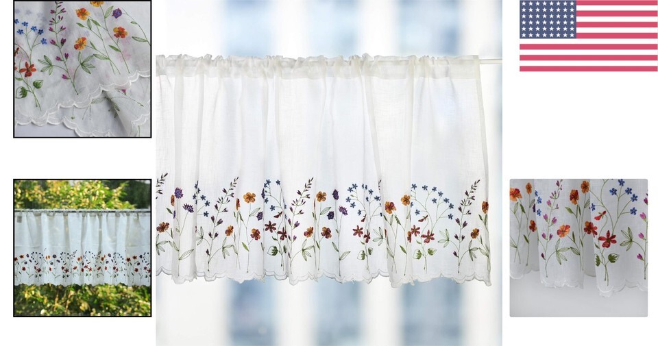 - Semi-Sheer Wild Flower Valance 60''x18'' - Perfect for Kitchens & Living Rooms